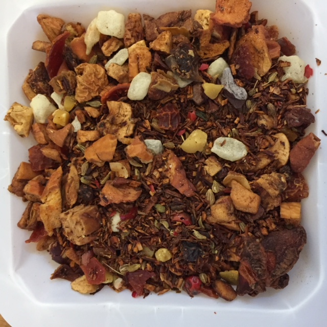 Een “ronde” vruchten melange met Rooibos en een aangenaam aroma.