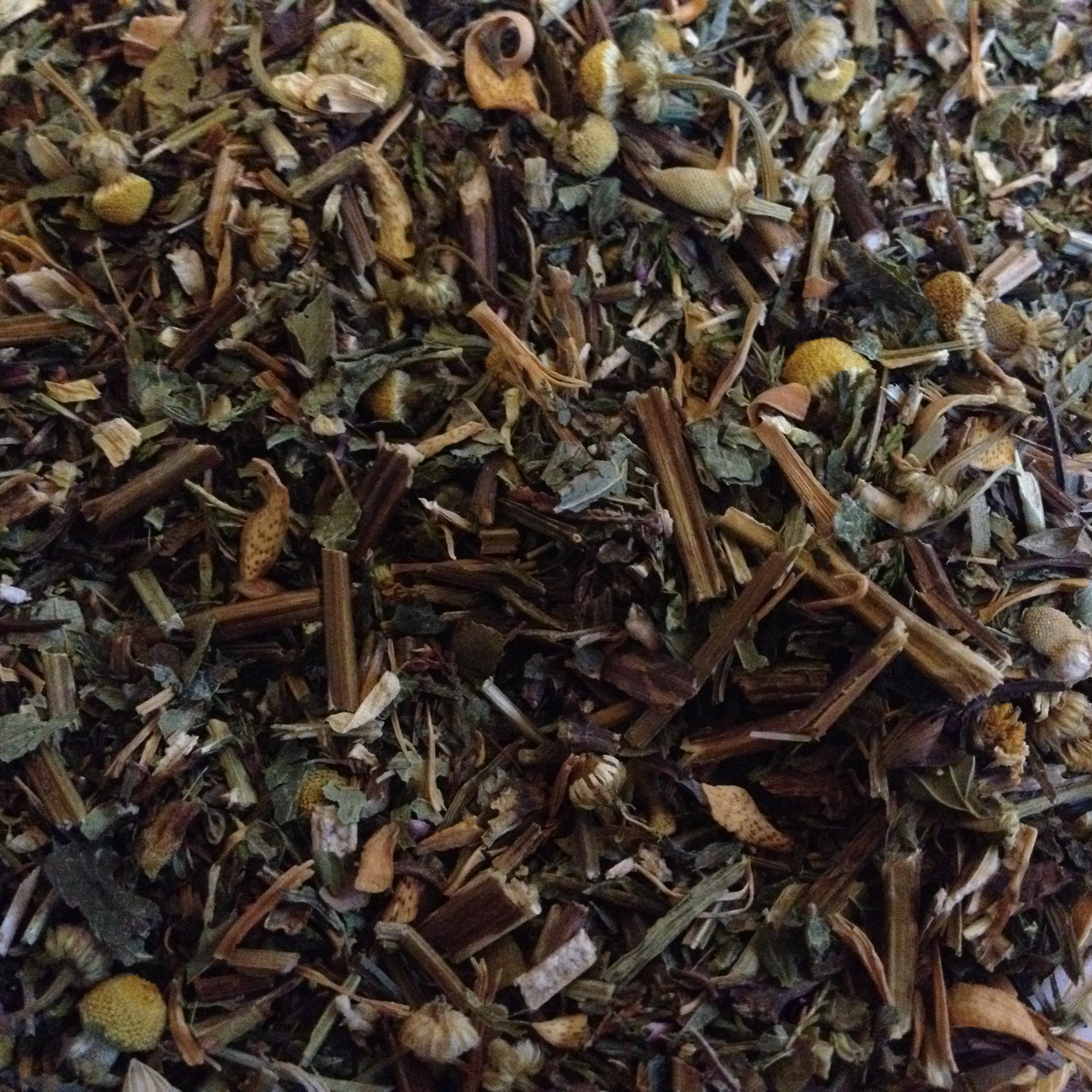 Ingrediënten: avondmaalkruidenmengsel (citroenmelisseblaadjes, heide, pepermuntblaadjes, kamille, oranjebloesem, aardbeiblaadjes), aroma.